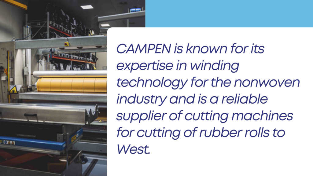 West trusts CAMPEN Machinery A/S for long-lasting and efficient winding and cutting of rubber rolls